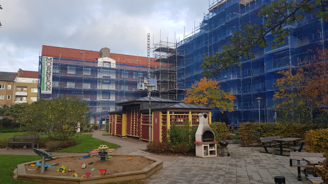 Morneon Fasad utförde renovering av klimatskalet på Lokförargatan 17 i Lund åt Bostadsrättsföreningen (Brf) Lokföraren i Lund. Entreprenaden omfattade fasadrenovering, takomläggning, installation av solceller, fönsterrenovering, balkongrenovering, omfogning av tegelfasader samt montering av nya balkongräcken i smide. För en bostadsrättsförening är klimatskalets funktion avgörande för byggnadens långsiktiga drift och underhållsplanering. Nedbrutna fogar i tegel och betongskador…