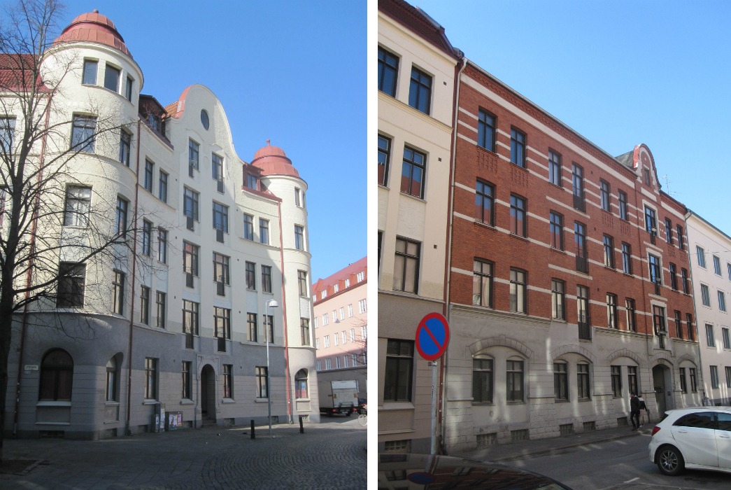 Det färdiga resultatet efter avfärgning av gårdsfasaderna.